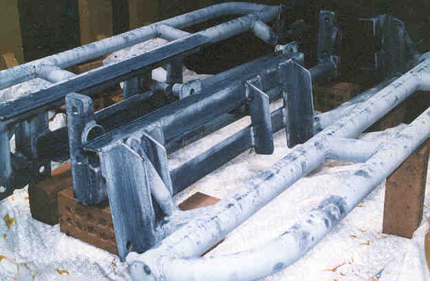 point as the construction details show up better with the lighter surface appearance after the acid etch. The left side bar in the foreground shows how the frame cradle was essentially added to the three pipes that would