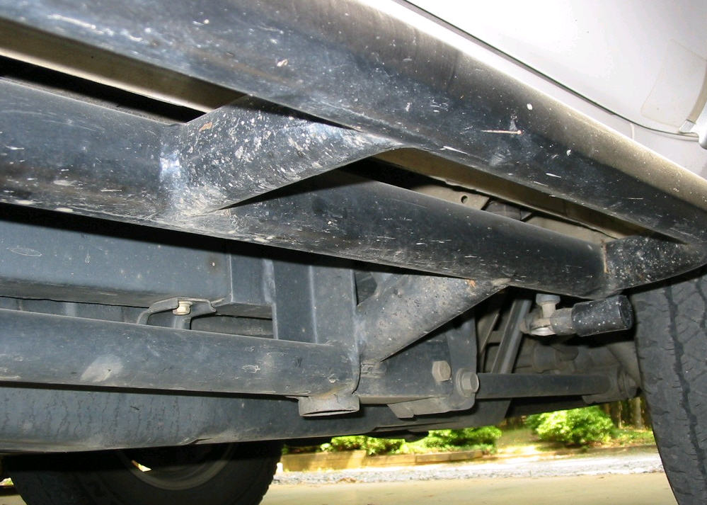 normally be welded direct to the frame. Before finalizing the rock slider mounting location with respect to the vehicle, a mock up of the proposed final mounting location was done to ensure the final mounting location would not excessively interfere with getting into and out of the vehicle.